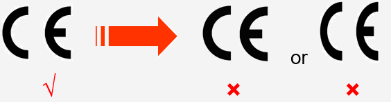 CE is the abbreviation of “European commucities” and symbolises to custom officials that the product marked complies with one or more relevant EC-directives. The CE marking must be affixed visibly, legibly and indelibly to the product or to its data plate. A minimum height of 5 mm is required to ensure that it is legible. However, where this is not possible or not warranted on account of the nature of the product, it must be affixed to the packaging, if any, and to the accompanying documents, where the directive concerned provides for such documents.Illegal cases for products marked with CE: